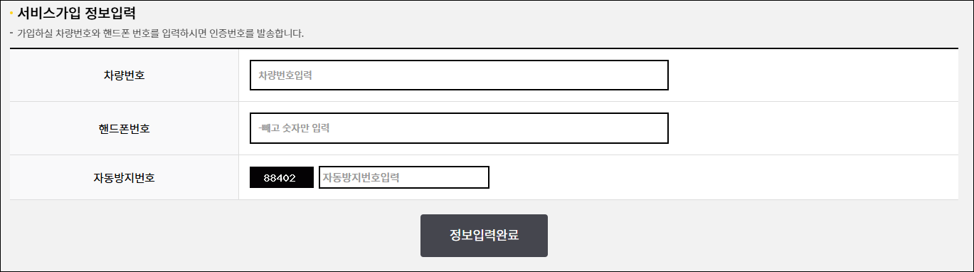 • 차량 정보 입력 및 휴대폰 번호 등록