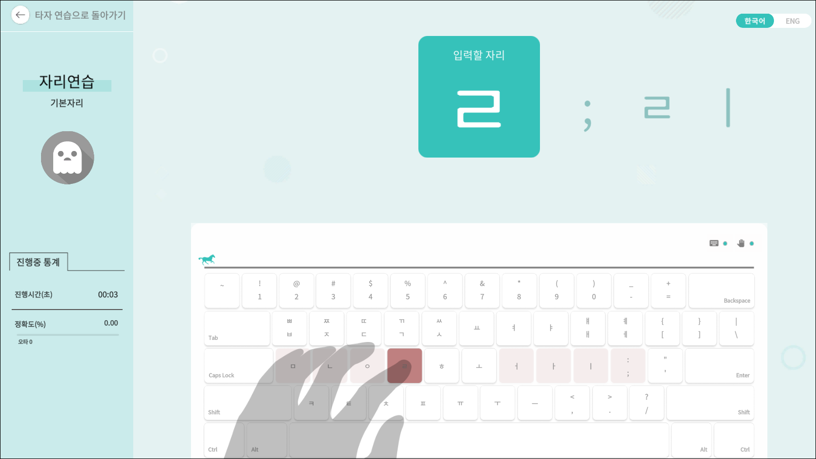 • 손가락 위치(F, J 키 기준)를 항상 고정합니다.