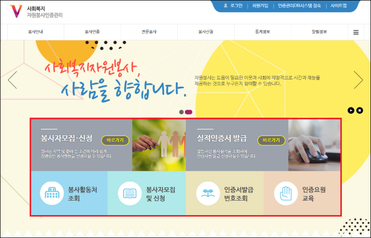 봉사활동 실적조회 방법