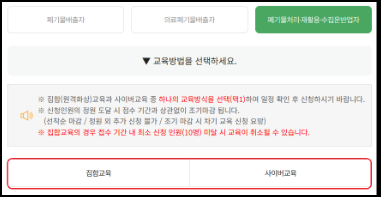 | 4 | 교육 이수 (온라인 또는 오프라인) | 선택한 방식에 따라 교육을 이수합니다. (온라인, 오프라인, 혼합형) |