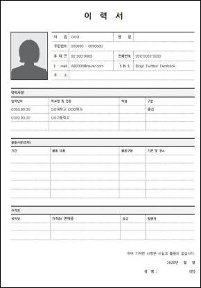 이력서 양식 무료다운 개요