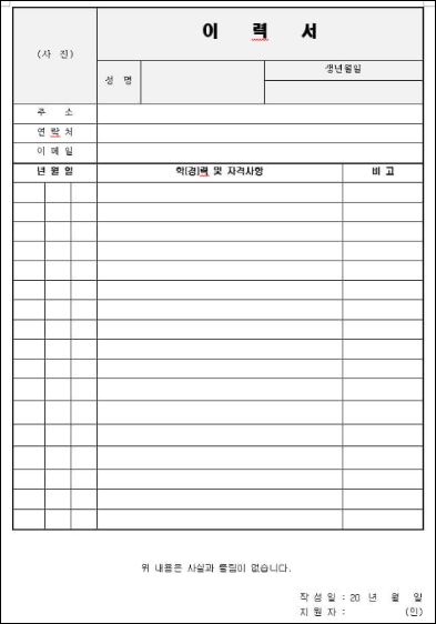 이력서 양식 무료다운 파일 및 사이트를 공유합니다. 취업 준비를 하다 보면 제일 먼저 마주하는 것이 바로 ‘이력서’입니다.