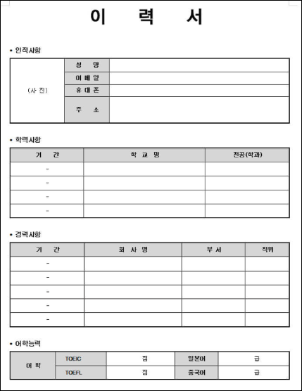 이력서 양식 무료다운