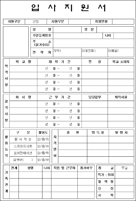 • 메뉴: 취업자료실 → 이력서 양식