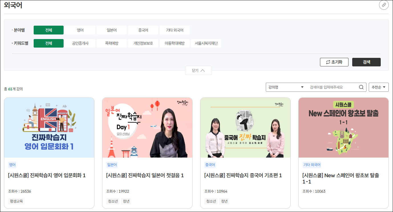 외국어 교육 | 영어, 중국어, 일본어 등 실생활 중심 언어 학습 |