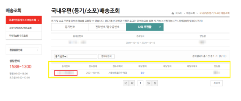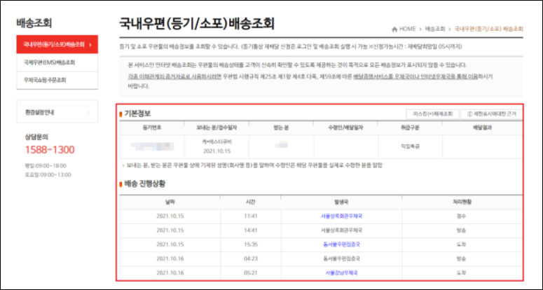 - 콜센터 연결: 우체국 콜센터 (1588-1300)로 전화합니다.