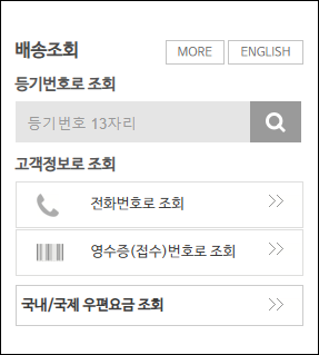 | 조회 사이트 | epost.go.kr | 각 택배사 공식 홈페이지 |
