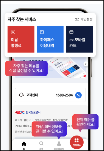 - 한국도로공사 고객센터(1588-2504) 또는 홈페이지 접속