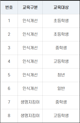 | 교육의 사회적 확산 효과 | 반복적 교육을 통해 사회 전반의 생명존중 가치관을 강화하고, 자살예방 인식 개선에 기여함. | 지역사회 캠페인, 지방자치단체 협력 |