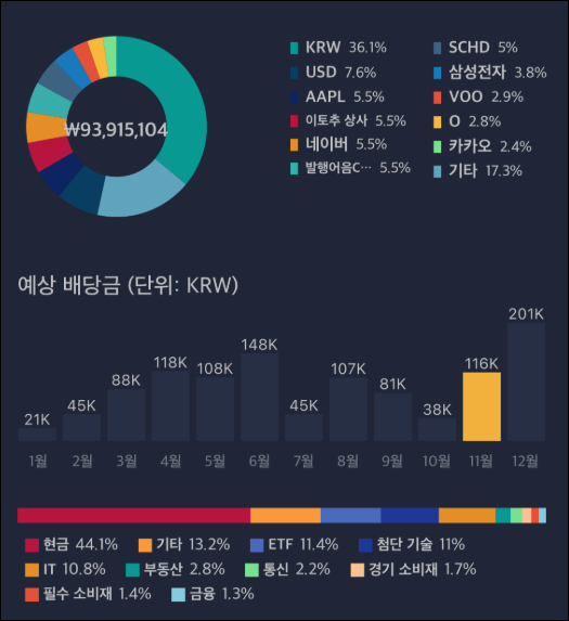 - 주식은 성장성과 배당주 중심으로, 채권과 현금성 자산은 안정성 확보용으로 운용합니다.