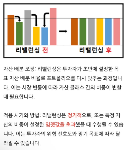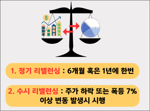 - 자산 배분 조정 (정기 리밸런싱 권장)
