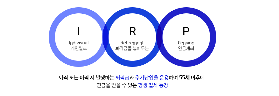 IRP는 퇴직 또는 이직 시 받은 퇴직금을 개인 명의의 퇴직연금 계좌에 적립하고 운용하여, 만 55세 이후 연금 또는 일시금으로 수령할 수 있는 제도입니다. 기존의 IRA가 2012년 IRP로 명칭이 변경되면서 '퇴직금 의무이전', '퇴직금 외 추가납입 허용' 등의 기능이 추가되었습니다.