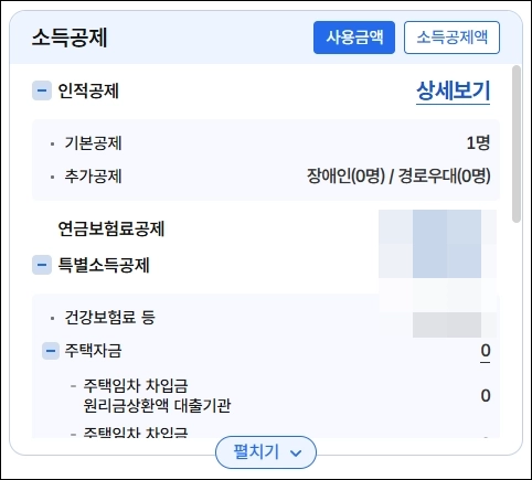 - 기부금·보험료·의료비·교육비 등 소득·세액공제 항목 반영 여부