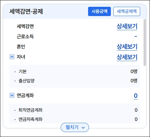 - 소득·세액공제 자료 조회 화면에서 자신의 지출내역(자동·수동)을 확인합니다.