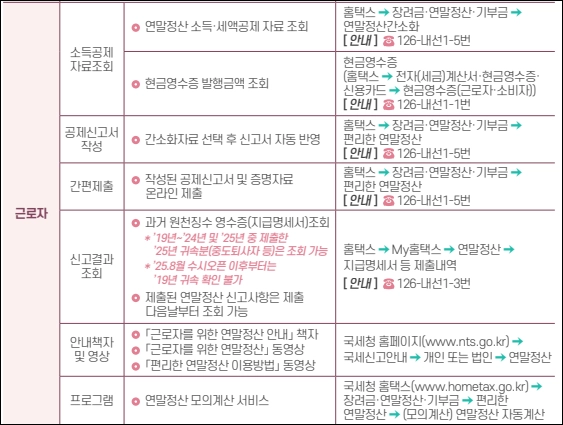 | 2025년 12월 31일까지 | 연말정산 업무 준비 및 안내 | 회사는 근로자에게 일정 안내 |