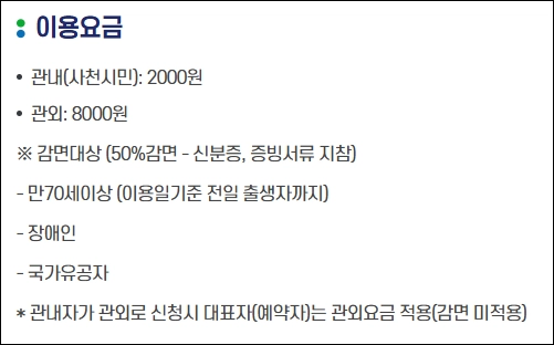 관외 거주자 8,000원 별도 할인 없음