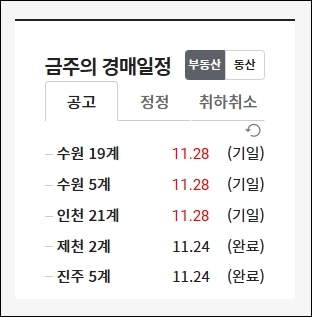 • 검색 결과는 실시간 반영되나, 매각기일은 최대 2주 후까지만 조회 가능