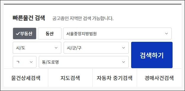 검색·선정 대법원 경매사건검색으로 물건 조회 -