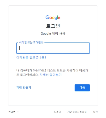 - Google 로그인 페이지에서 이메일 또는 전화번호 입력