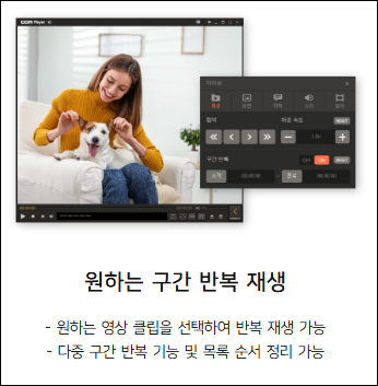 특정 장면이나 설명 구간을 반복 시청해야 하는 경우, 구간 반복 기능을 활용하시면 됩니다.