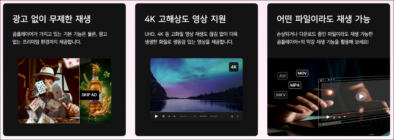 | 광고 노출 | 재생 화면 및 프로그램 내 광고 노출 가능 | 광고 완전 제거 |