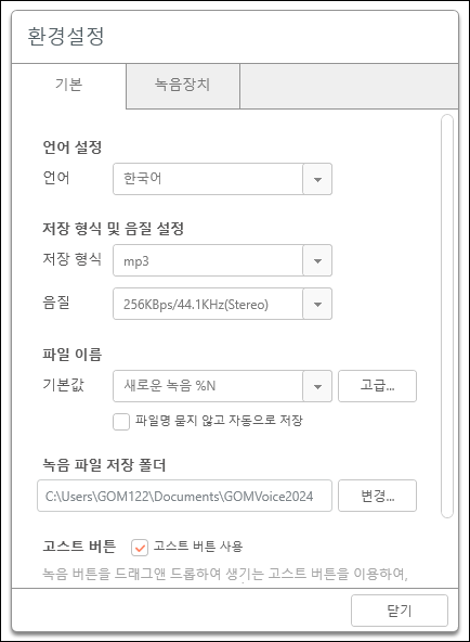 곰 녹음기는 기본적으로 음성 녹음에 적합한 파일 형식을 제공합니다.