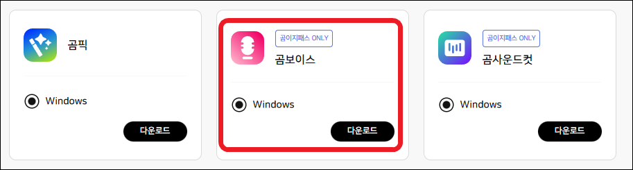 - 제품 목록 또는 검색 기능을 통해 GOM Recorder(곰 녹음기) 페이지로 이동합니다.