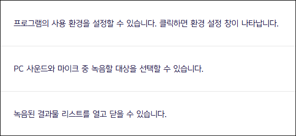 • 설치 완료 후 바탕화면 또는 시작 메뉴에서 곰 녹음기를 실행합니다.