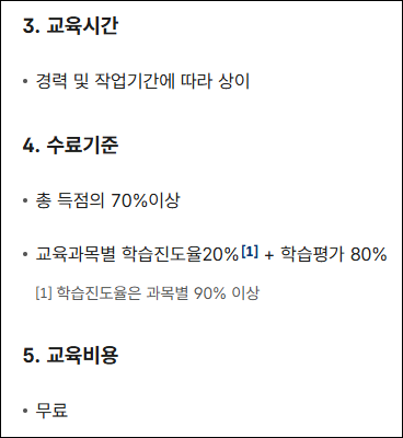 - 교육 도중 중도 이탈 또는 장시간 미접속 시 수료로 인정되지 않음