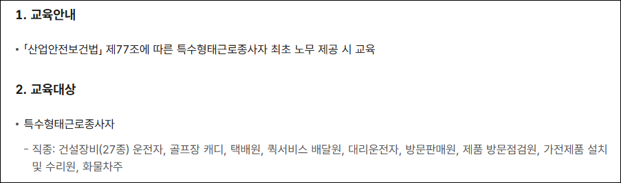 특수형태 근로종사자 안전교육 내용 구성