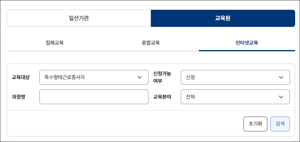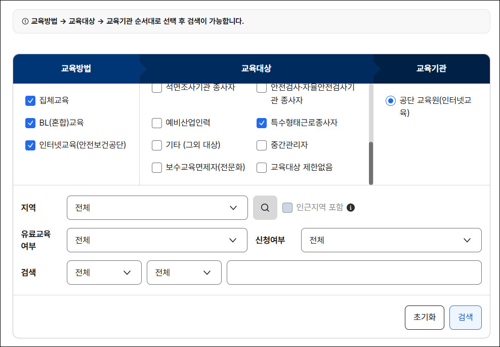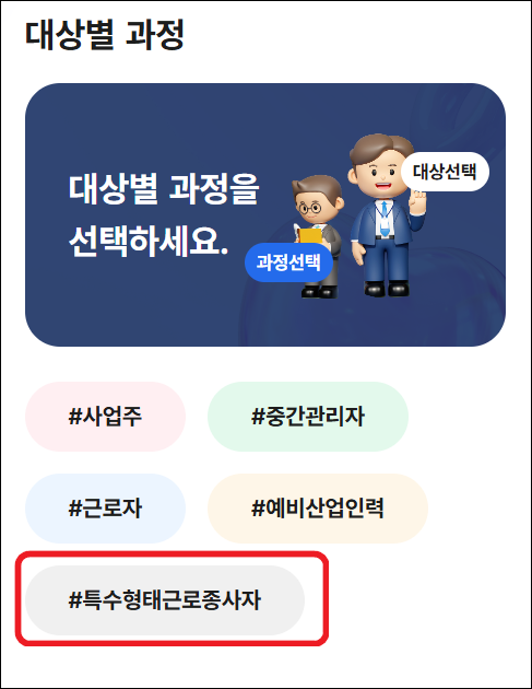 - 특수형태 근로종사자 안전교육 과정 선택