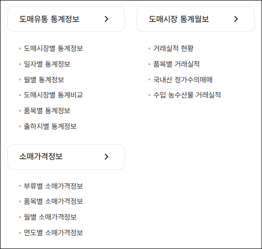 - 도매시장별 정보 제공 방식 상이