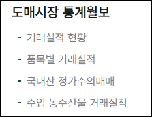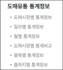 | 품목별 통계 | 품목별 가격 변동 및 거래 동향 |