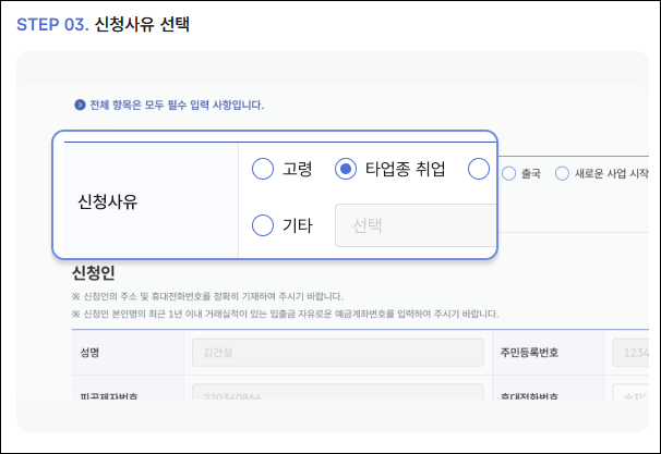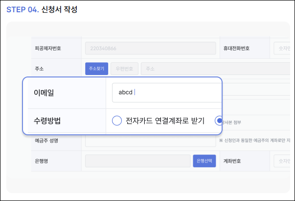 - 계좌 정보 입력 후 신청 완료