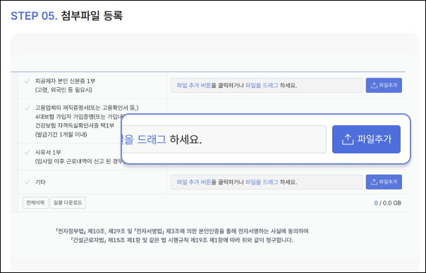 - 지급 사유 선택 및 서류 첨부