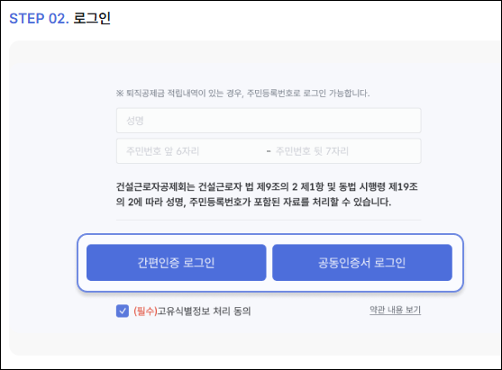 - 공동인증서 또는 간편 인증 로그인