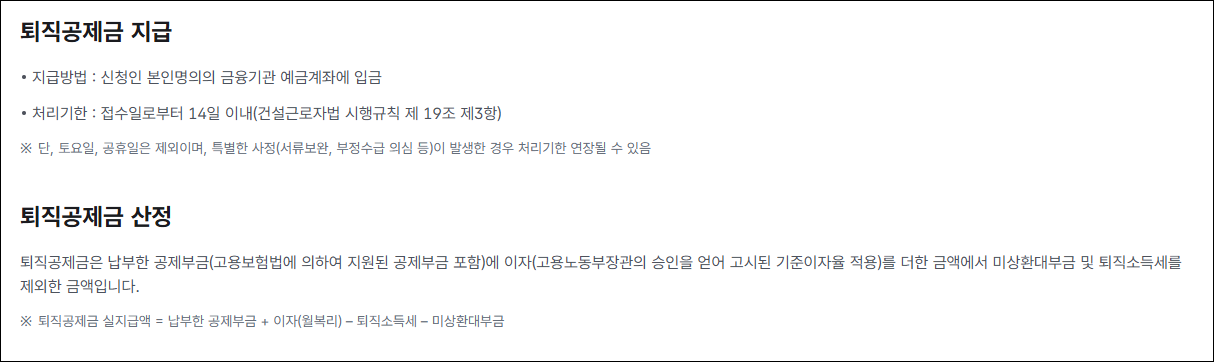 3) 퇴직공제금 지급 방식 및 소요 기간