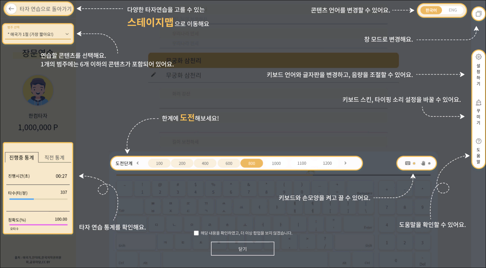 - 자리 연습, 낱말 연습, 문장 연습, 게임형 연습 등 단계별 콘텐츠를 제공해 초보자부터 고급 사용자까지 모두 활용 가능