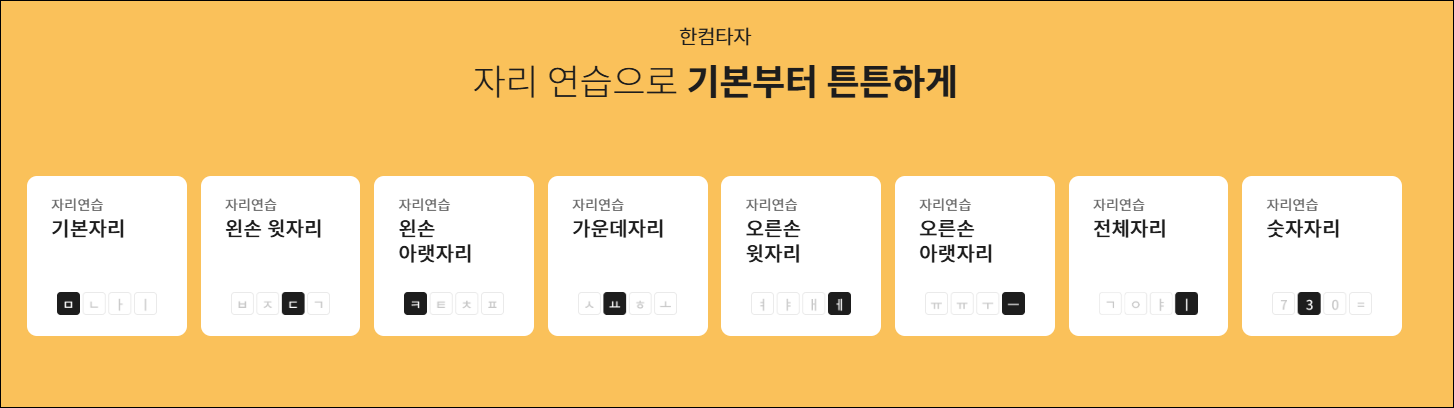 - 자리연습: 자판 위치를 익히는 기초 단계로, 홈포지션과 각 손가락의 배치를 반복 학습합니다.