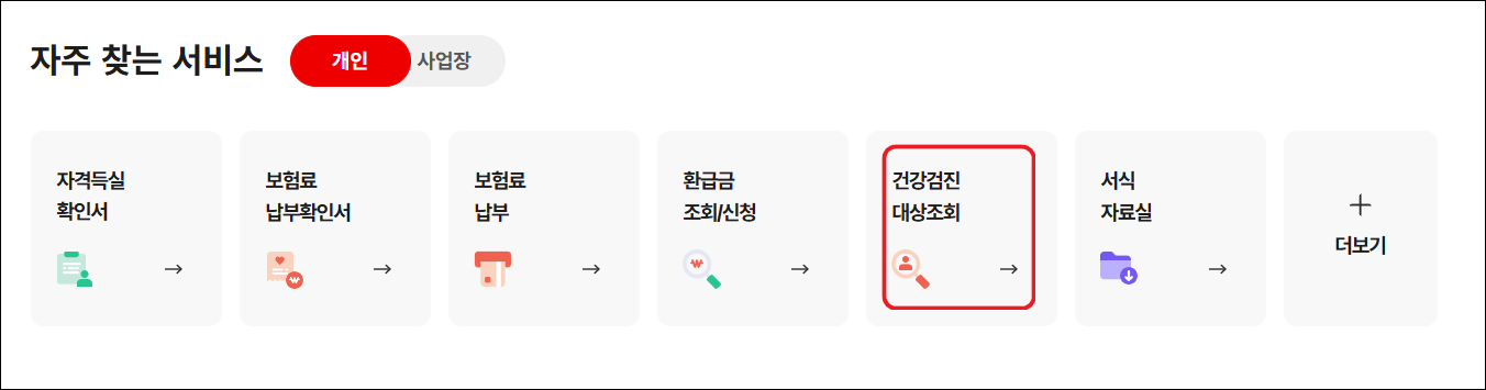 - 건강검진 메뉴에서 대상자 여부 확인 가능