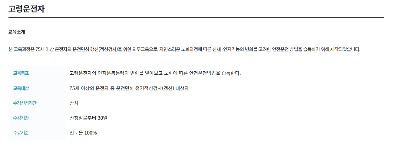 | 고령운전자 교통안전교육 | 만 65세 이상 운전자 |