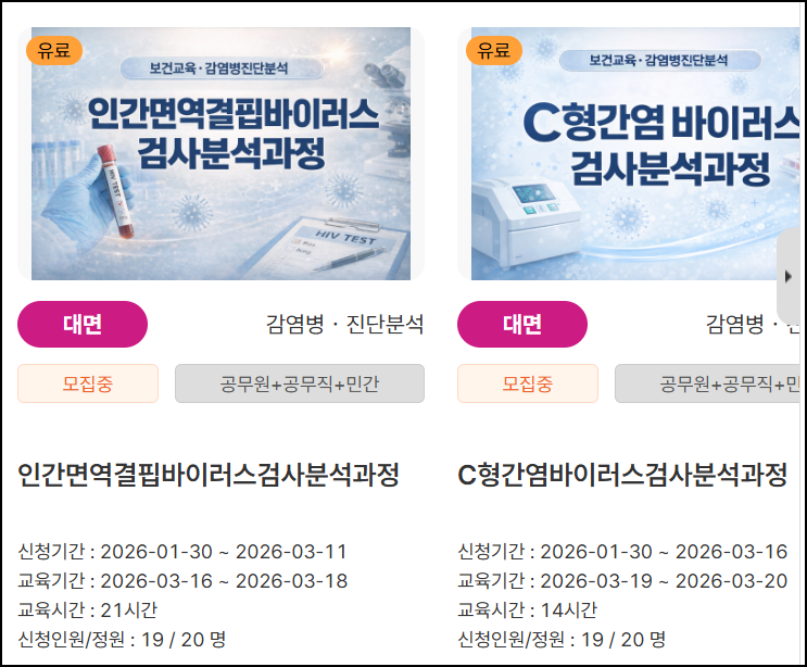 | 보건생명 | 질병관리 | 방역관리자 업무교육(이론/실천편) | 0.5~5시간 |