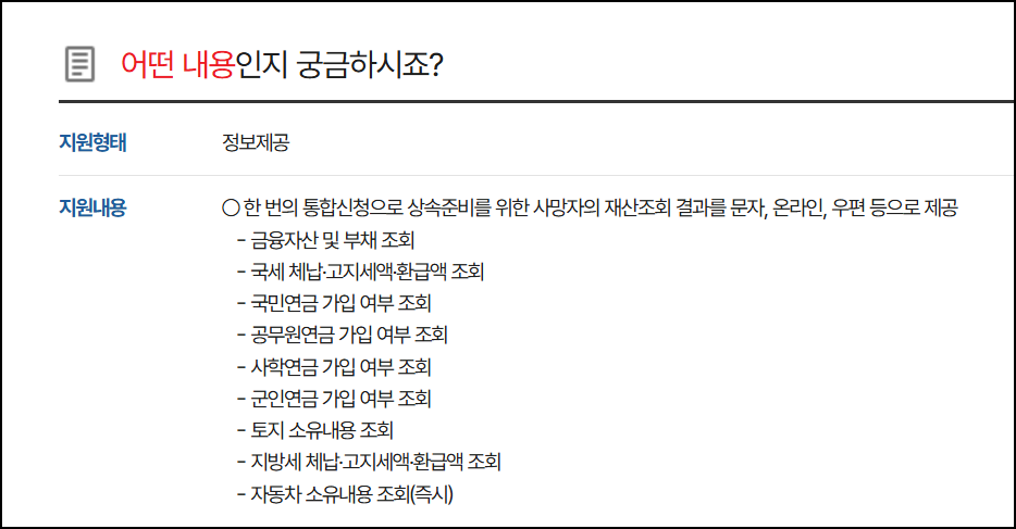 안심상속 원스톱서비스 조회 대상 및 재산 항목