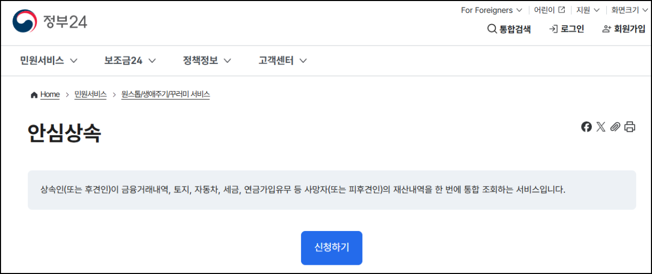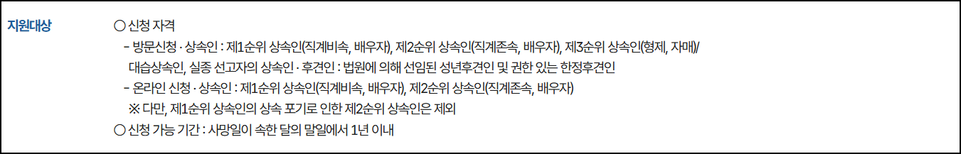 - 이용 가능 대상 - 1·2순위 상속인만 온라인 신청 가능.