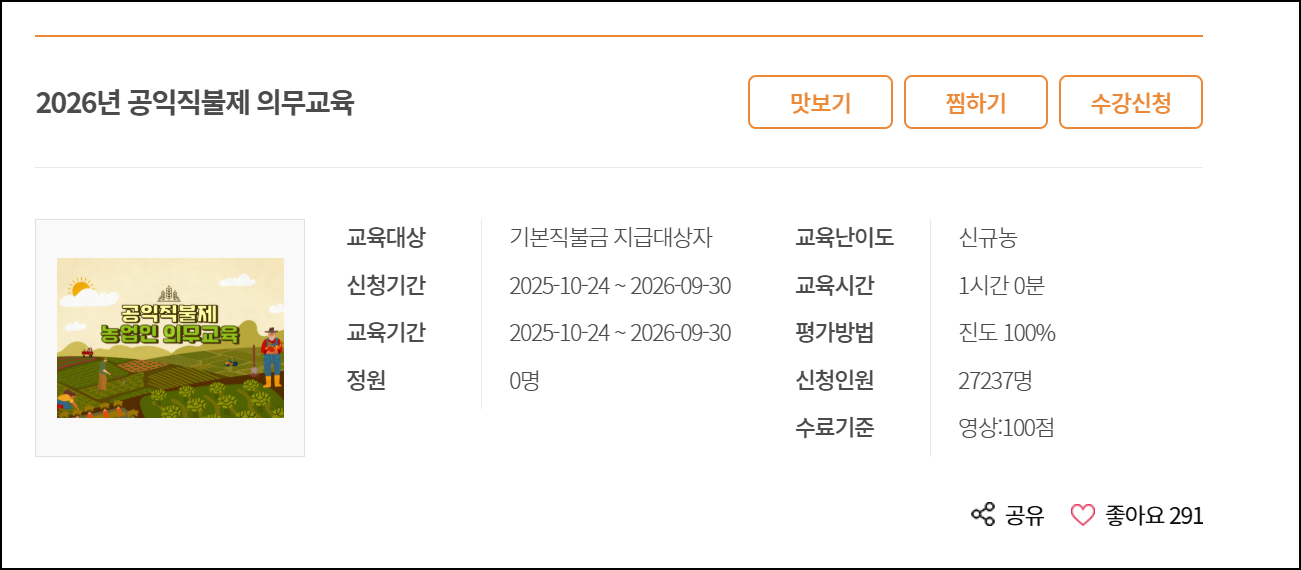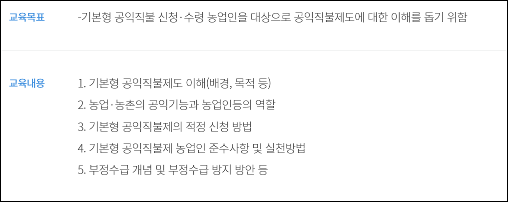 | 공익직불금 교육 | 직불금 신청 농업인 의무교육 |
