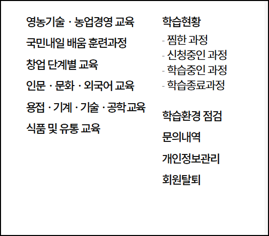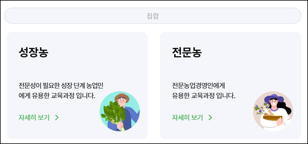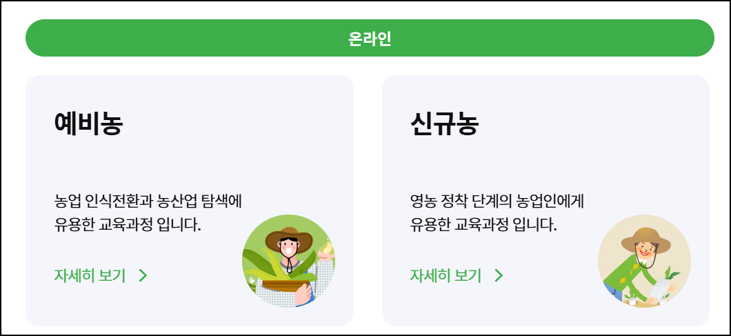 | 농업 창업 교육 | 청년농 및 귀농귀촌 교육 |
