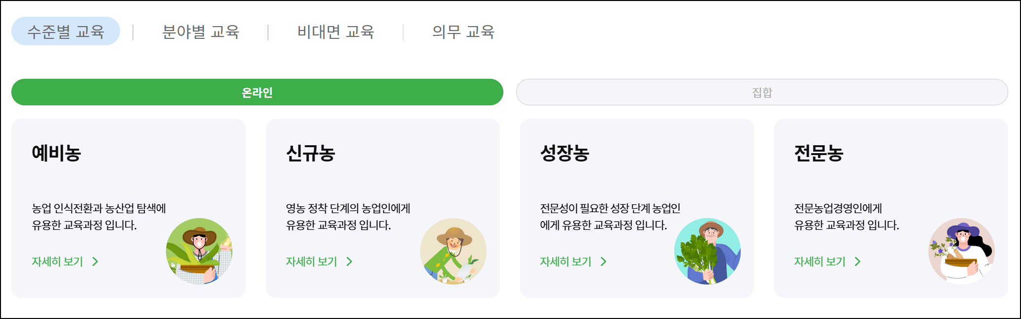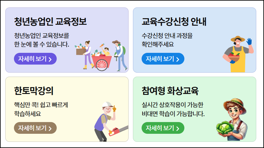 농업교육 포털에서는 다양한 분야의 교육을 제공합니다.