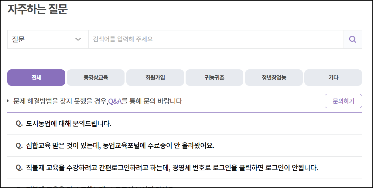농업 교육포털 홈페이지 FAQ