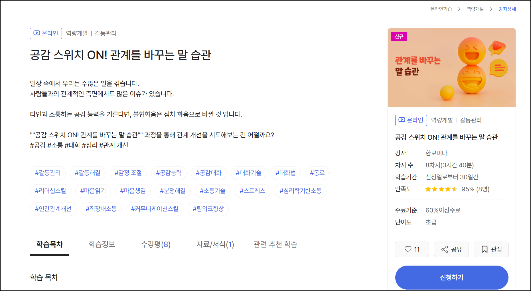 - STEP 3. 강좌 목록에서 원하는 과정 선택 → 강좌 상세 페이지 확인