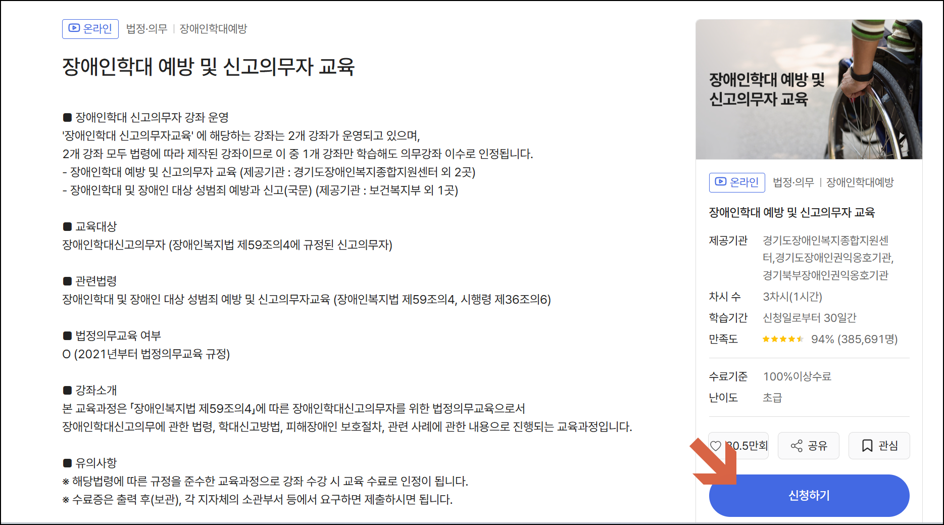 법정 의무교육 신청 안내